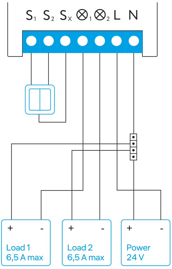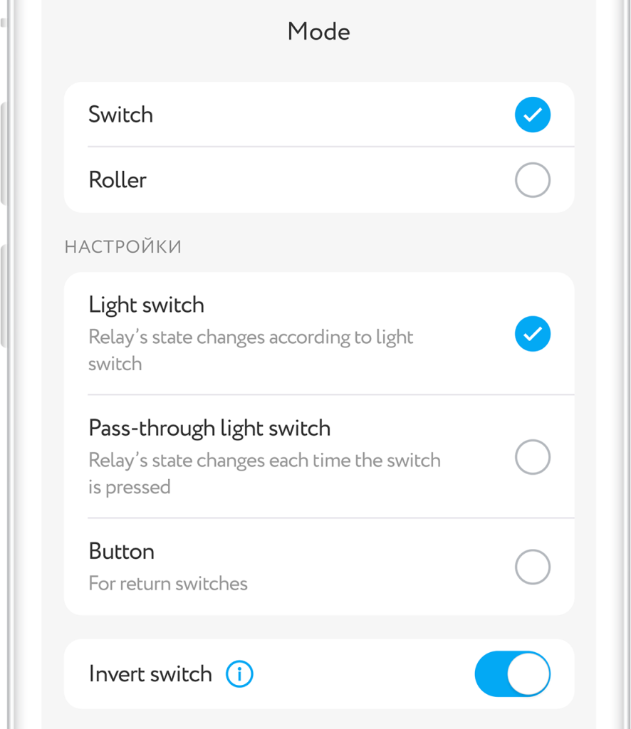 In roller mode you can control electric actuator of gates, rolling shutters and louvers.