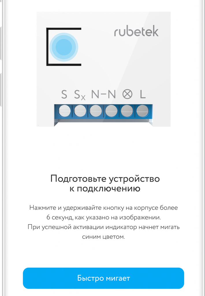- Нажмите и удерживайте кнопку на корпусе более 6 секунд. При успешной активации индикатор начнет мигать синим цветом