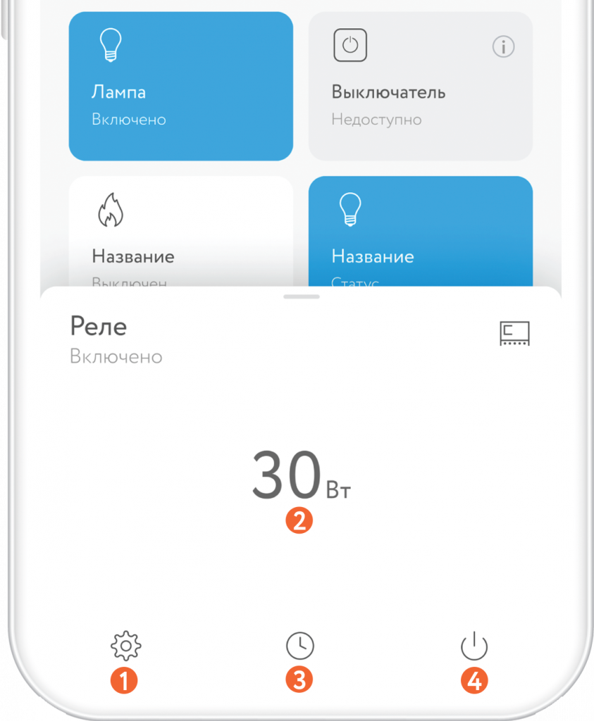 Блок поддерживает до 10 таймеров на включение и 10 таймеров на выключение. Они будут работать независимо от наличия сети интернет. Для настройки таймеров необходимо перейти в шторку управления Блоком, зажав плитку устройства на основном экране.