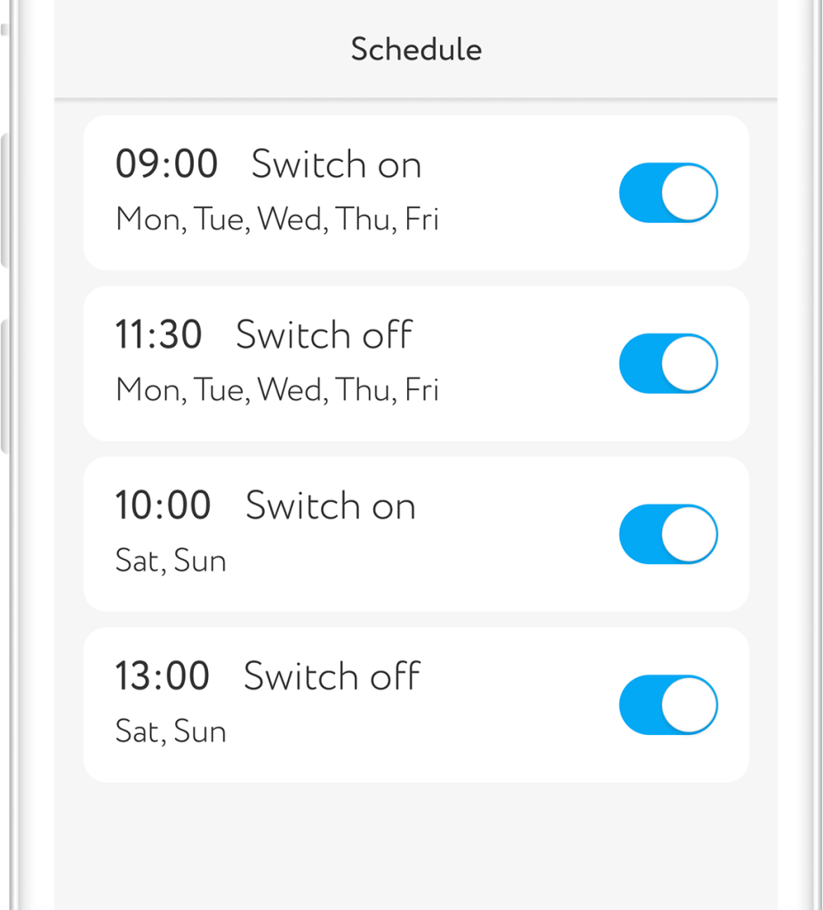 Relay supports up to 10 timers for switching on and 10 timers for switching off. The will be in operation regardless of the availability of the Internet. Got to control shade and press its tile on the main control screen to set timers.