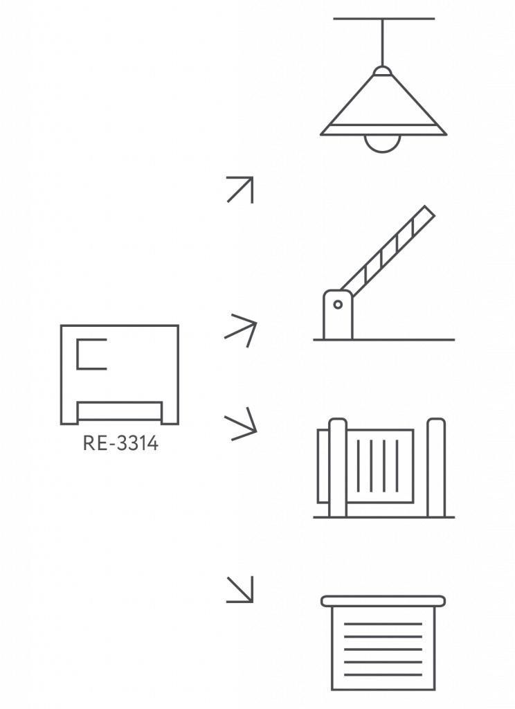 Relay with dray contact allows you controlling automatic gates, access gates, roller doors and other electric appliances up to 3 kW. Use mobile app rubetek for remote control of Smart Home system.