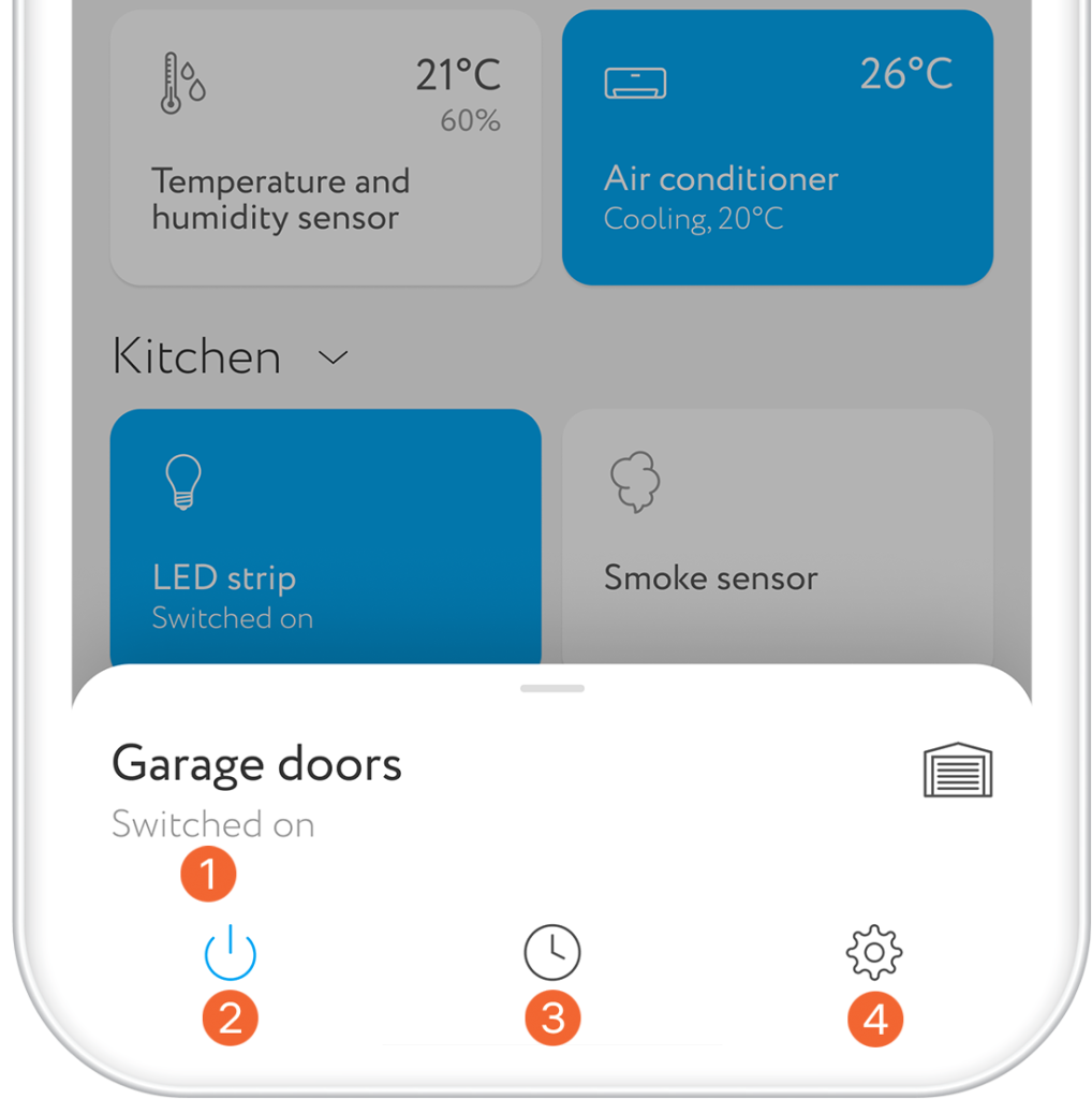 To switch the relay on/off, a single press on the tile of the device is sufficient.