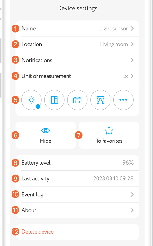 When you add sensor in application, 3 tiles will appear on the main screen: illuminance, temperature, humidity and motion sensor.