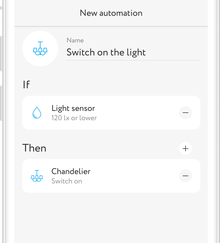 Create another light source control scenario based on the illuminance sensor values and get a complete solution for saving energy and taking care of your eye health.