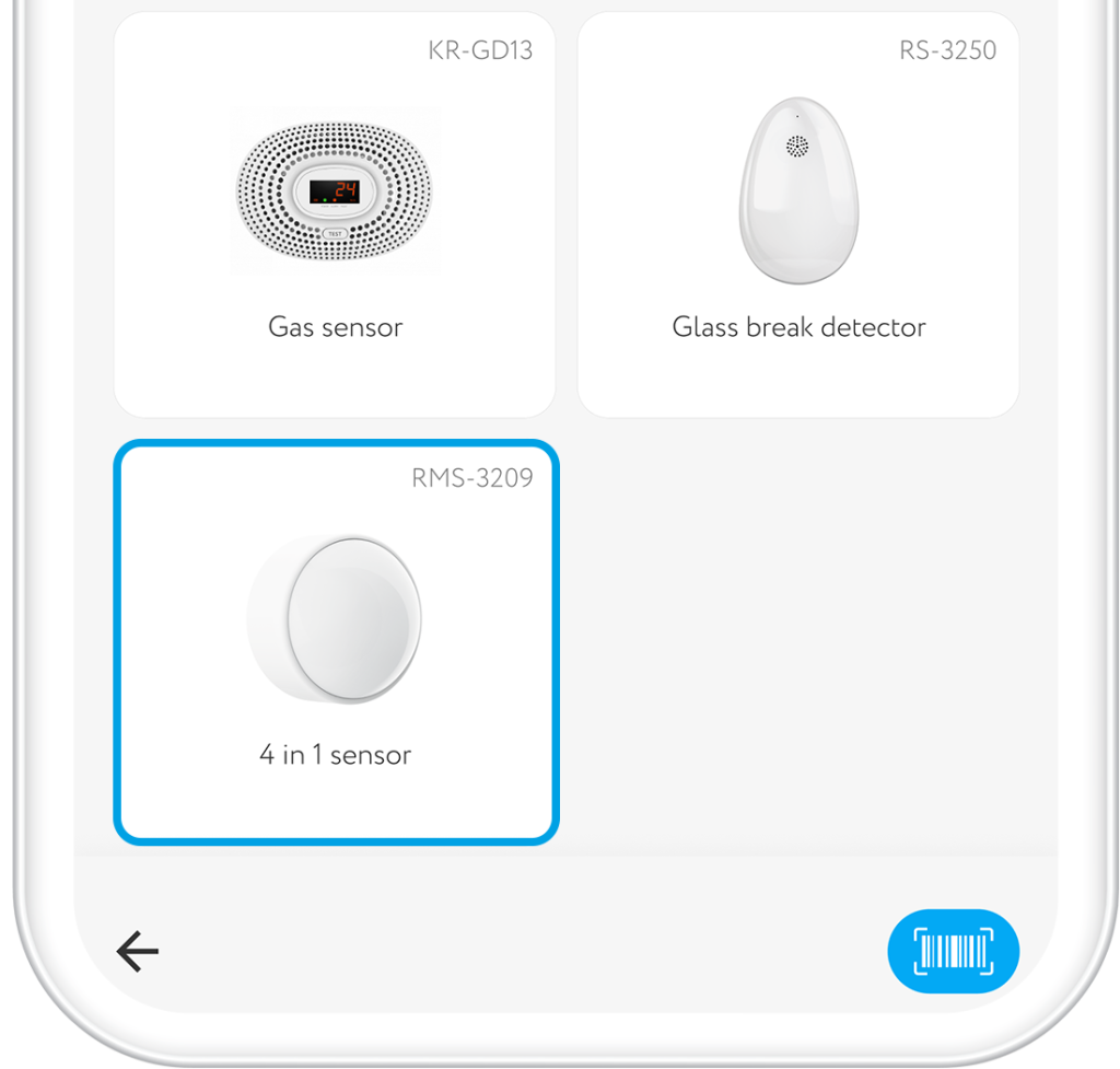- Select section Safety → 4 in 1 sensor RMS-3209