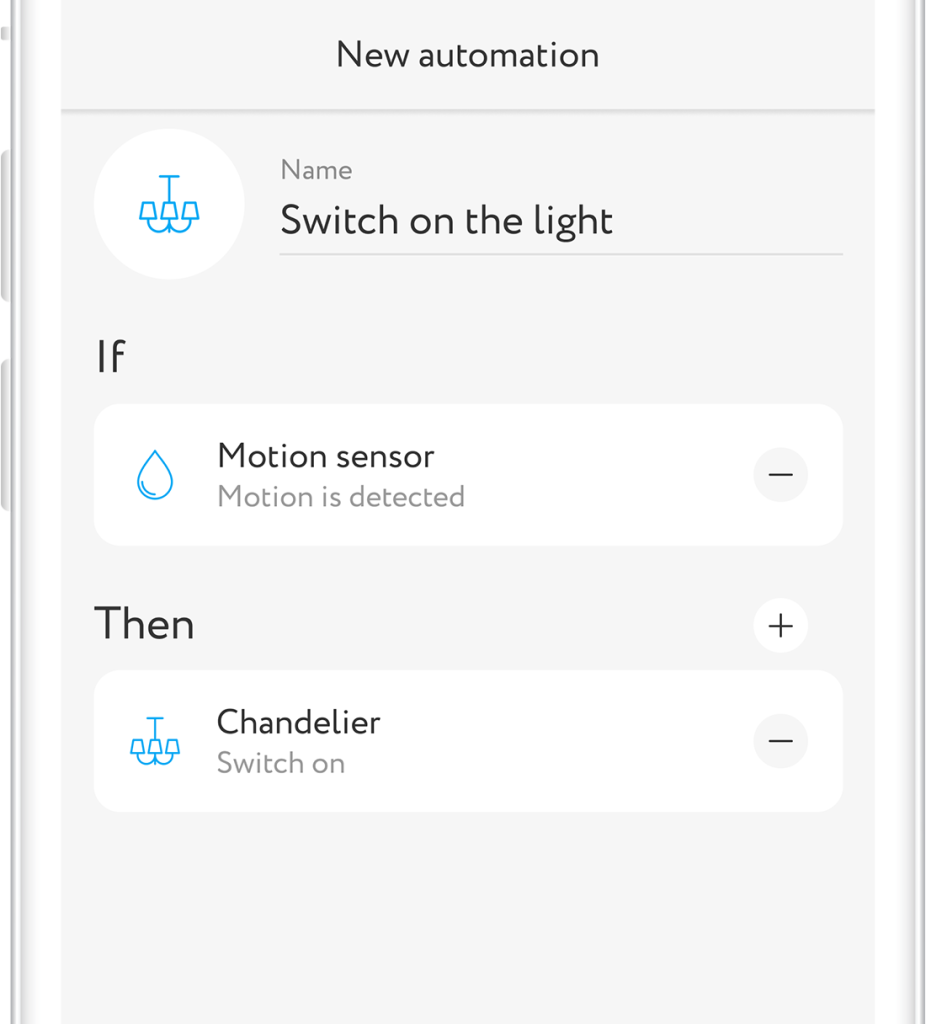 - Create conditions of scenario activation: If → Device condition → Motion sensor→ Motion detected