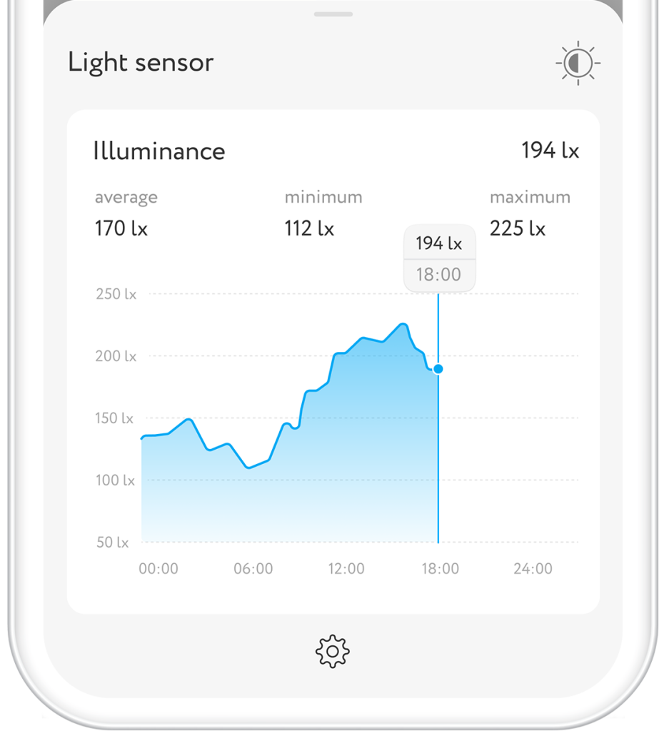 You can see three statistics for different time periods: illuminance level, temperature and humidity. Schedules are displayed on the main screen.