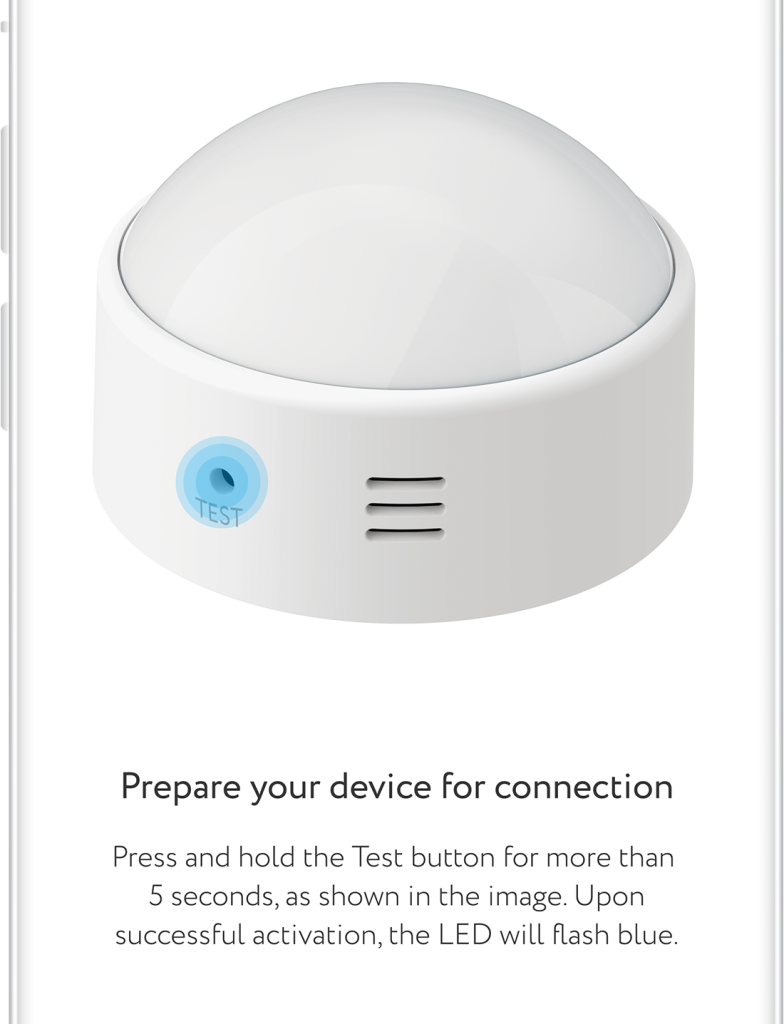 - Press and hold button more than 5 sec. to put sensor in adding mode. Diode on front side shall start flashing