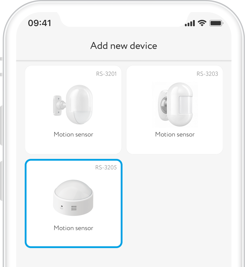 - Select section Safety → Motion sensor → Motion sensor RS-3205