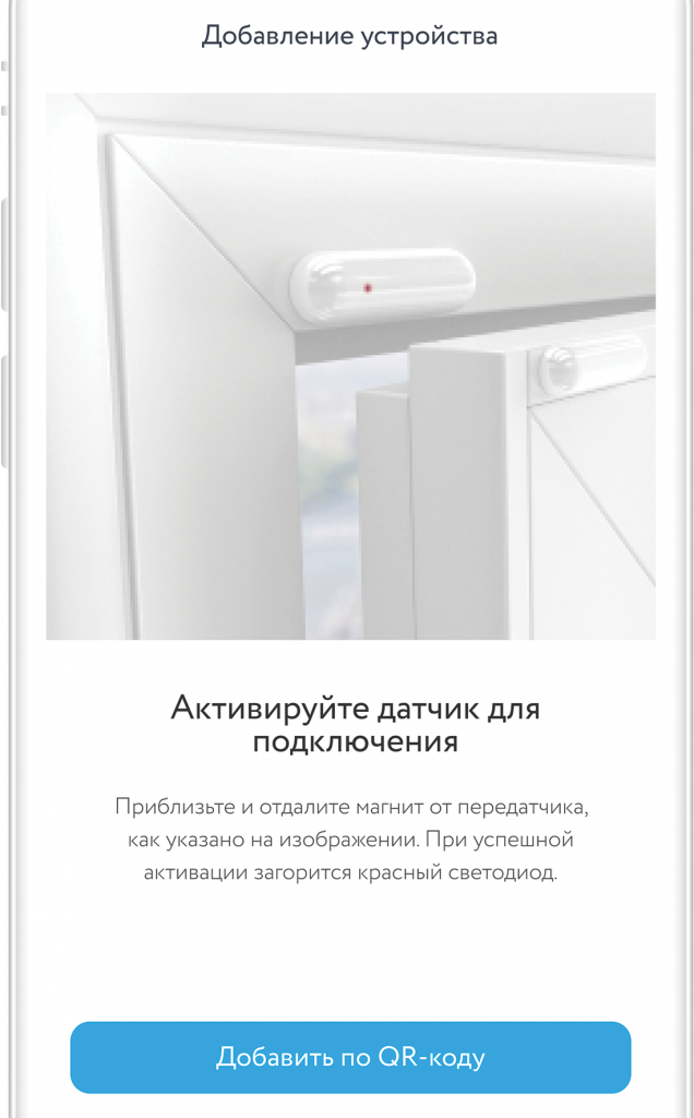- Чтобы перевести Датчик в режим добавления, приблизьте и отдалите магнит от передатчика. При успешной активации загорится красный светодиод