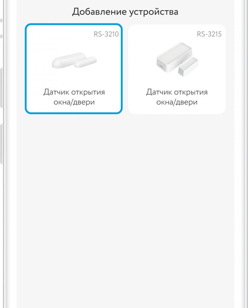 - Выберите раздел Безопасность → Датчик открытия окна/двери → RS-3210