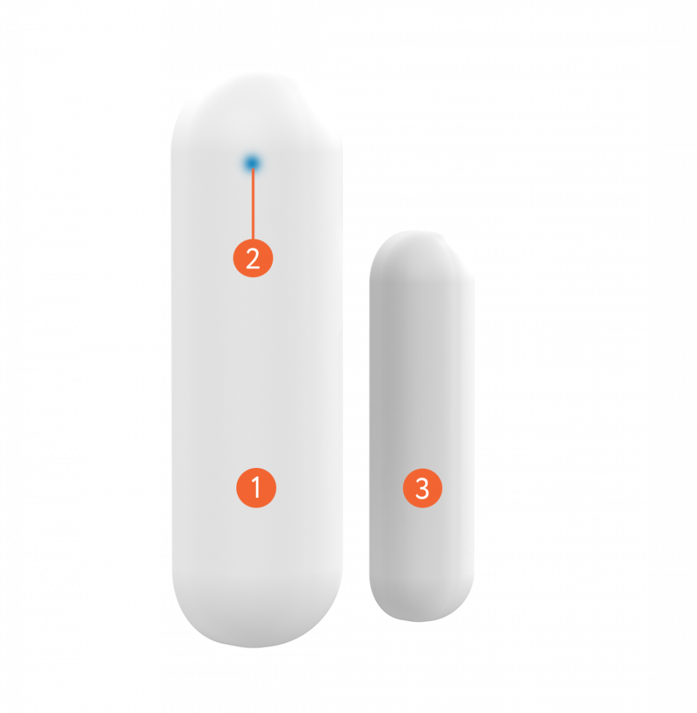 Датчик открытия состоит из двух частей — передатчика с герконом и магнита.