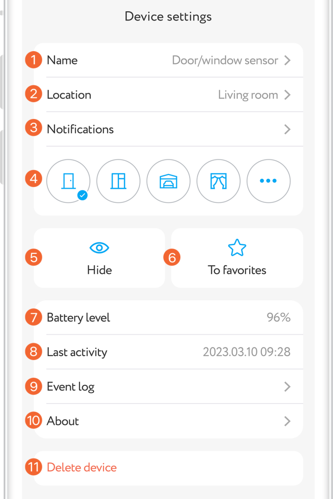 Door/window sensor — device that can be fastened at any opening surface. The sensor immediately responds to the opening of the door or window on which it is installed and sends a notification to your smartphone.