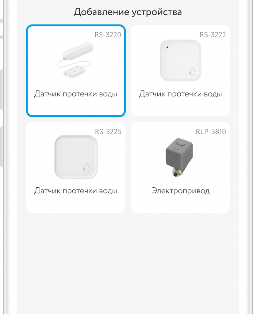- Выберите раздел Безопасность → Защита от протечки → Датчик протечки воды RS-3220