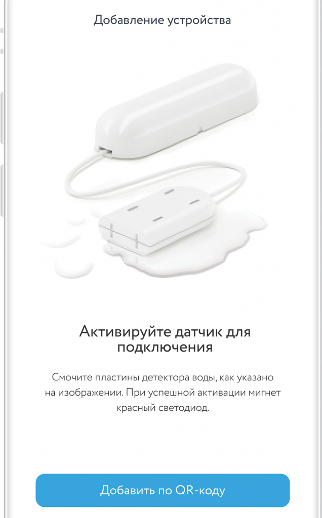 - Чтобы перевести Датчик в режим добавления, смочите пластины детектора воды. При успешной активации мигнет красный светодиод