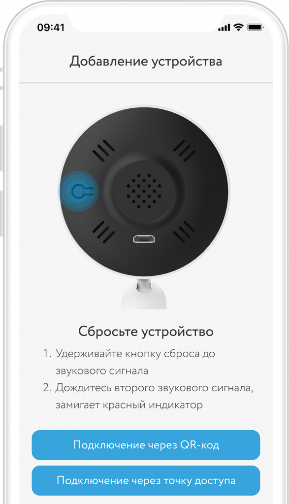 - При добавлении устройства через QR-код медленно приближайте и удаляйте смартфон от Камеры на расстоянии 15-20 см, пока не дождётесь звукового сигнала
