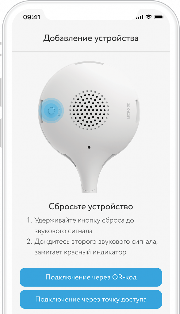 - При добавлении устройства через QR-код медленно приближайте и удаляйте смартфон от Камеры на расстоянии 15-20 см, пока не дождётесь звукового сигнала