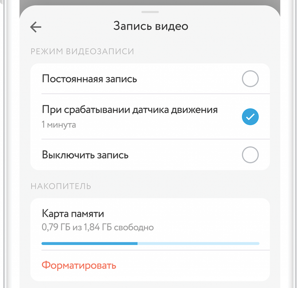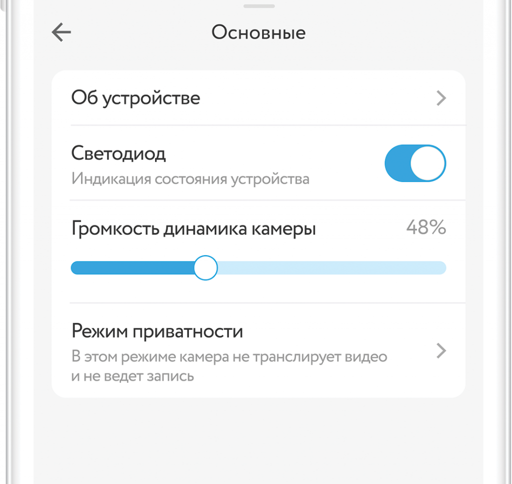 Режим приватности — отключает трансляцию видео и запись на карту памяти. Управляйте режимом вручную или настройте срабатывание по расписанию.
