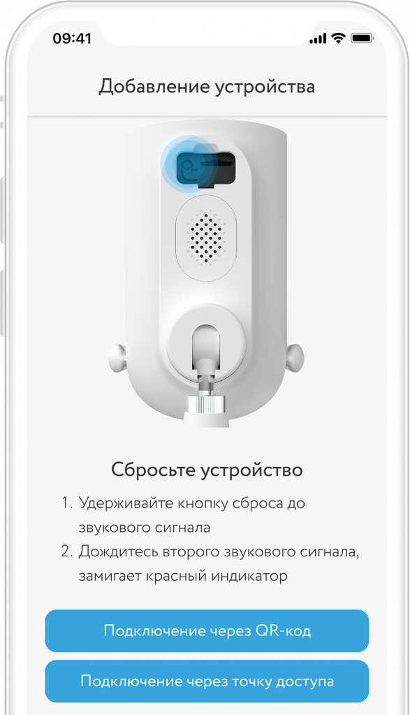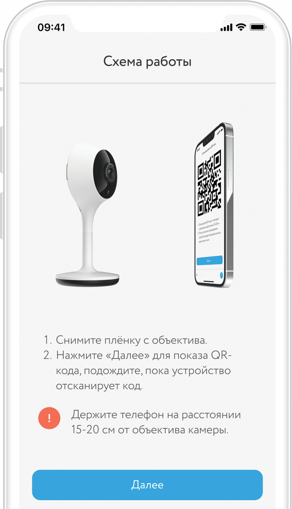 - При добавлении устройства через QR-код медленно приближайте и удаляйте смартфон от Камеры на расстоянии 15-20 см, пока не дождётесь звукового сигнала