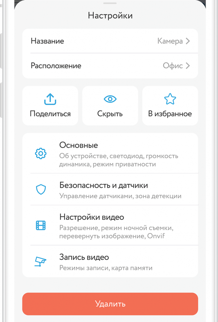 Поделиться — поделитесь доступом к Камере с близкими и управляйте устройством через приложение вместе.