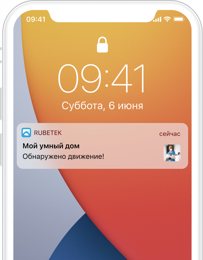 Для получения push-уведомлений при срабатывании встроенного датчика движения или шума необходимо включить режим «Охрана». Для этого нажмите на иконку замка на главном экране Камеры.