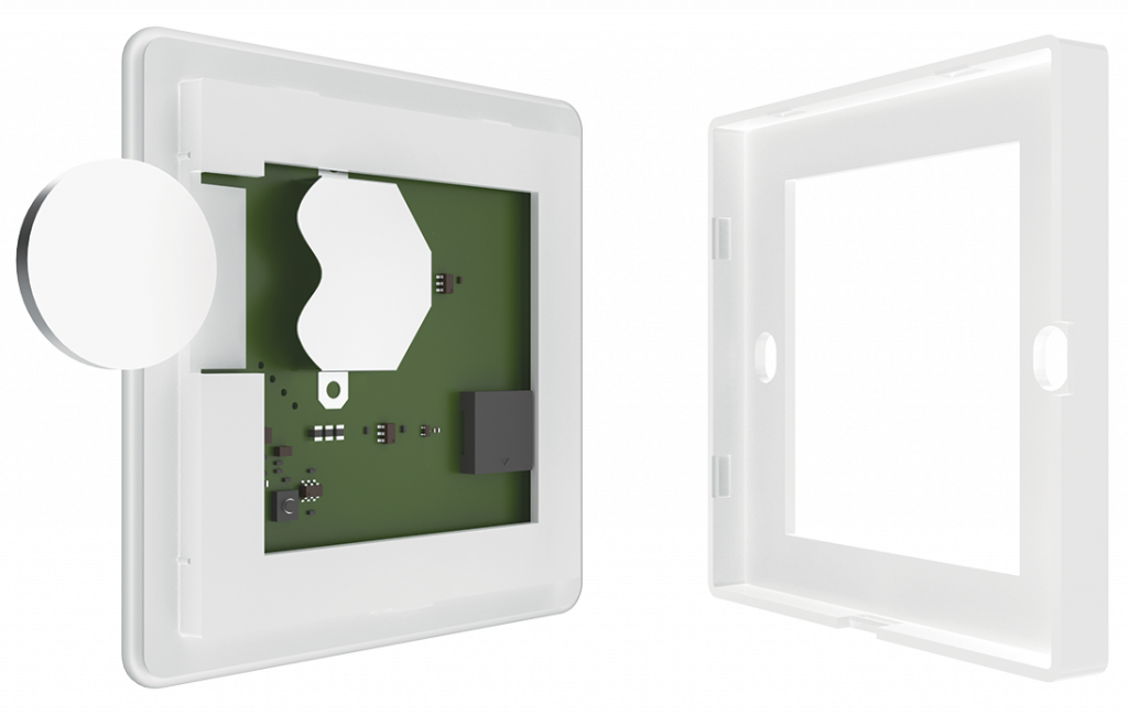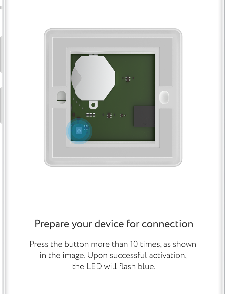 - Press and hold mechanical button, placed on rear part of the panel for more than 5 sec. If activation was successful, blue LED will start flashing and beep will sound