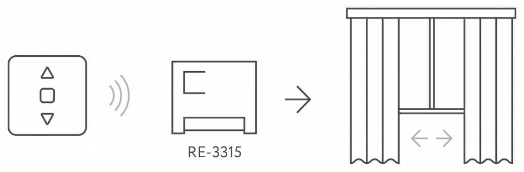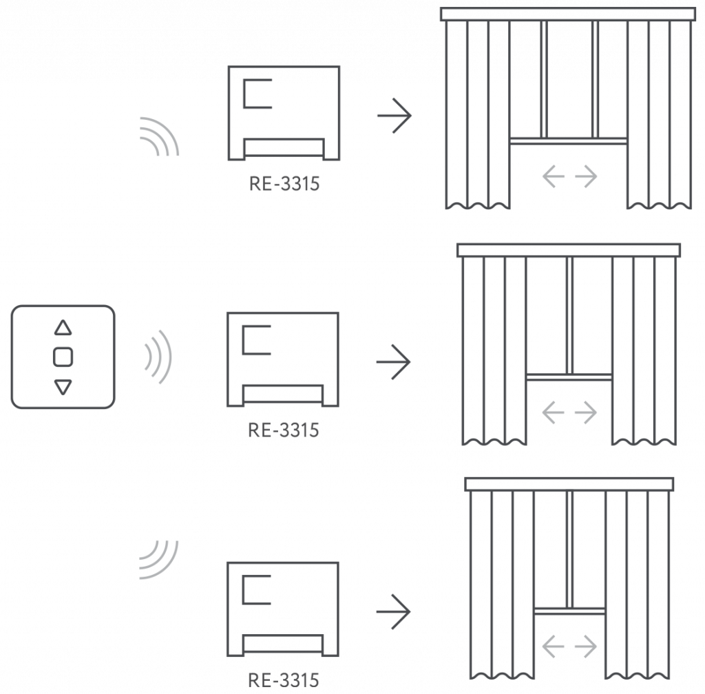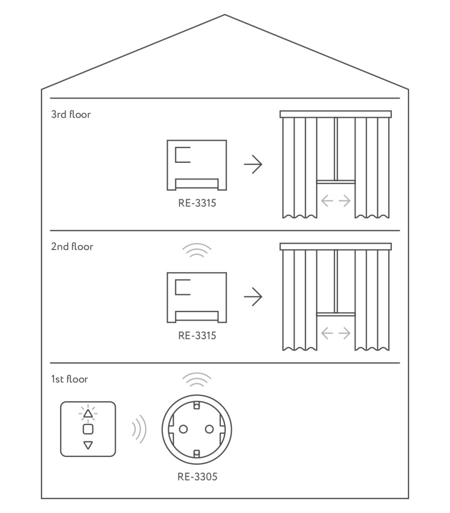 E.g., control all the electric curtain rod in a country house with one RL-3128 Panel and Plug RE-3305 located on the first floor.