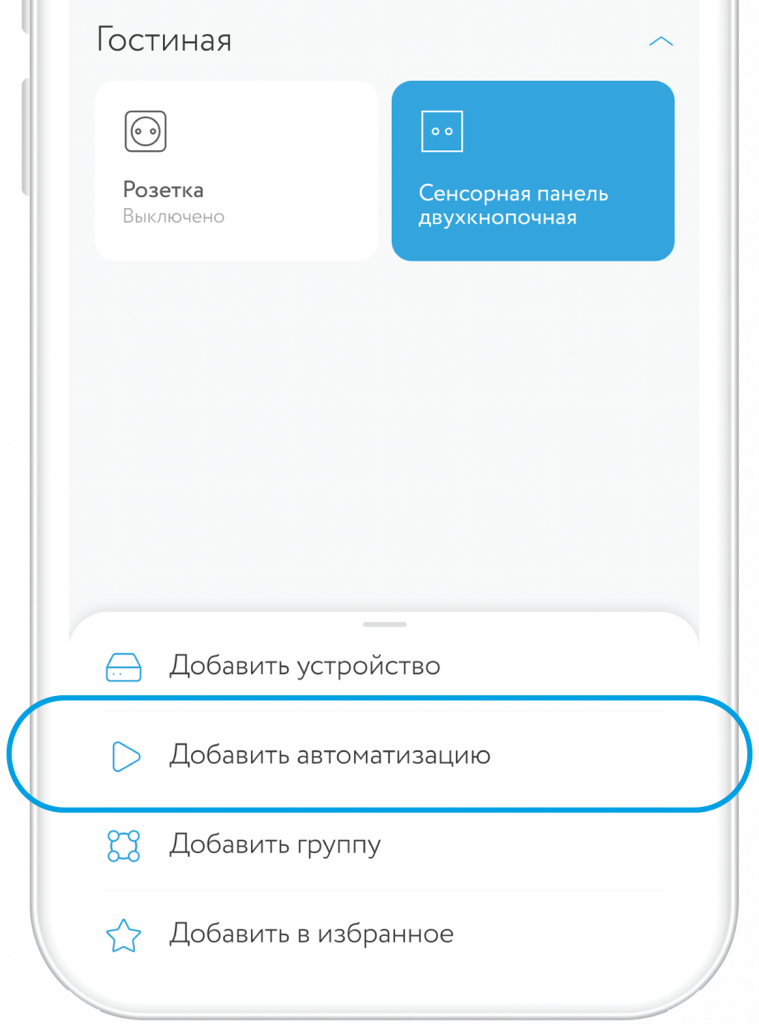 - Для создания нового сценария нажмите на «+» в верхнем правом углу главного экрана и выберите «Добавить автоматизацию»