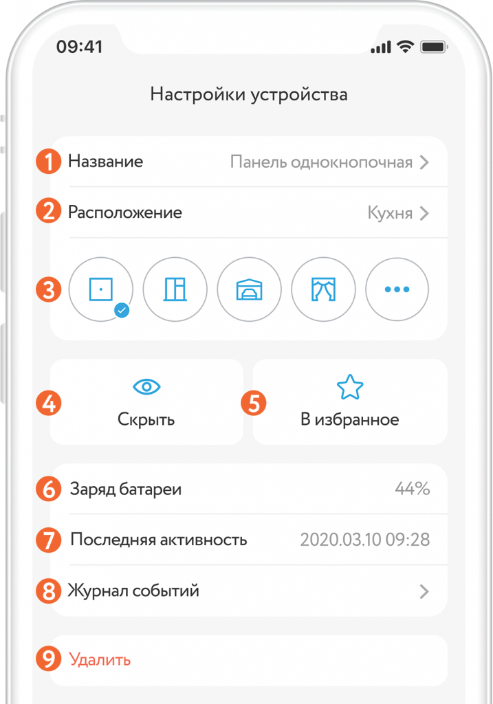 Панель дистанционного управления — беспроводное устройство, которое позволит расширить возможности Умного дома, не привязываясь к штатной проводке. Одним касанием вы можете не только управлять светом, но и ставить дом на охрану, открывать дверь при звонке в домофон, выключать все приборы в доме, а также запускать сценарии.