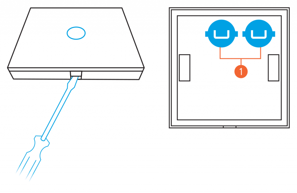 Снимите заднюю крышку отжав язычок на корпусе выключателя, чтобы получить доступ к батарейному отсеку.