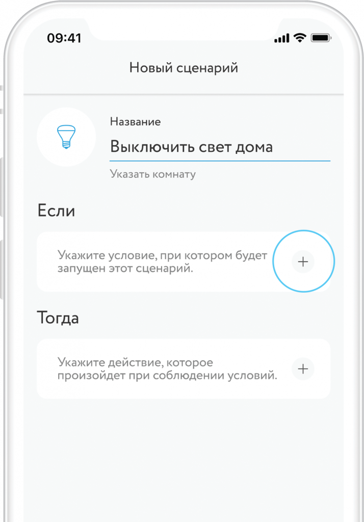 - В открывшемся окне заполните поле «Название» (например, «Выключить свет дома»)
