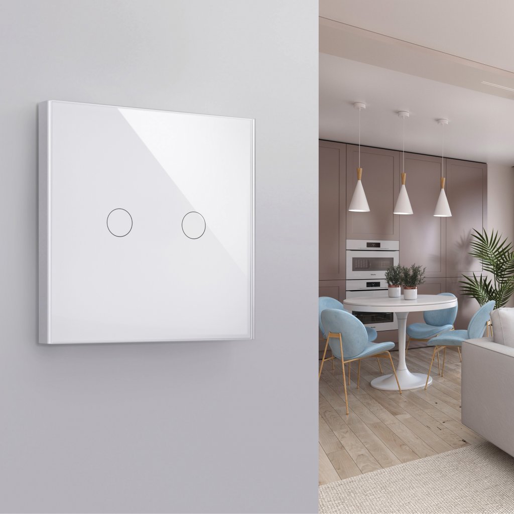 Панель дистанционного управления имеет встроенный радио-модуль. При вашем касании, она посылает радиосигнал установленному дома приёмнику или же отправляет команду в rubetek Cloud, после чего настроенный сценарий приводится в исполнение компонентами системы Умный дом.