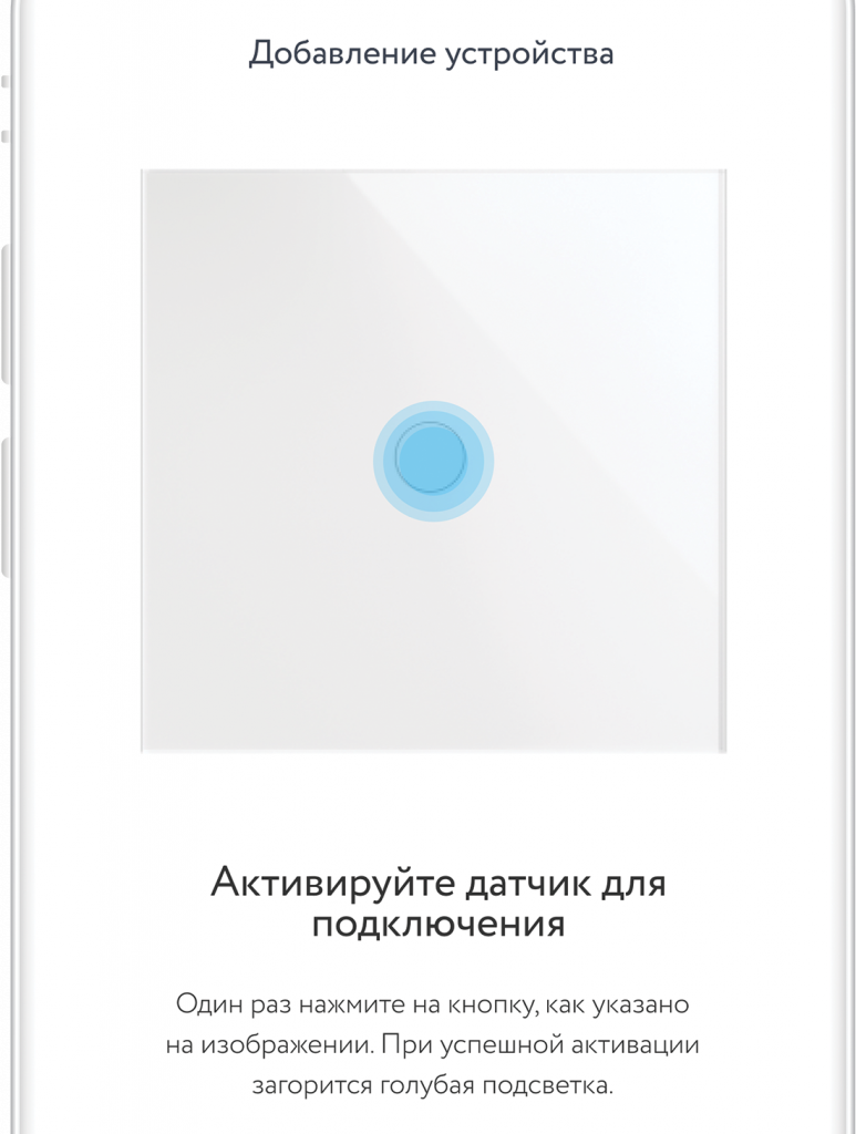 - Чтобы перевести устройство в режим добавления, один раз нажмите на кнопку. При успешной активации загорится голубая подсветка