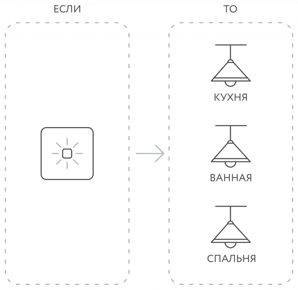 5. В пункте «Тогда» определяется устройство, которым вы хотите управлять с помощью Панели, а также действие, которое должно произойти при вашем касании.