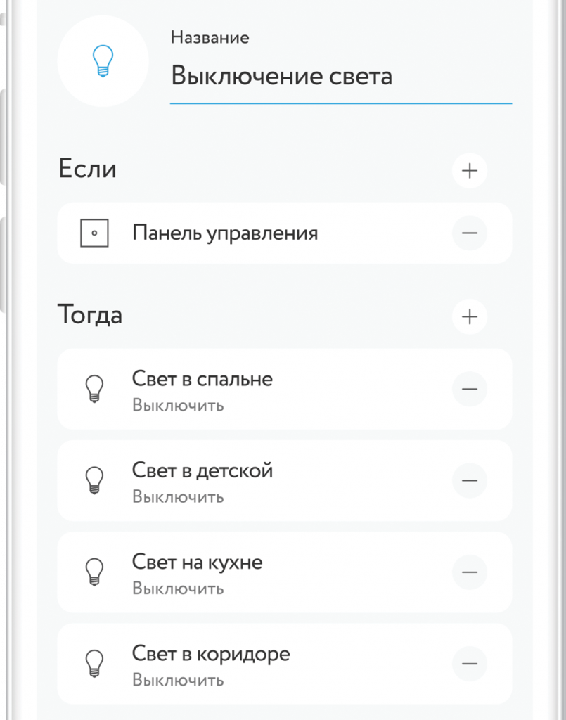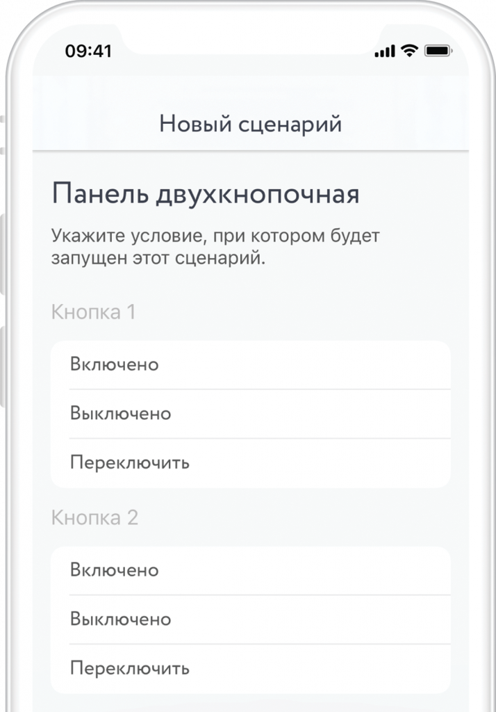 4. Панель сохраняет данные о своем состоянии после каждого вашего касания: «включено» или «выключено». Вы можете настраивать сценарии по трем видам событий: