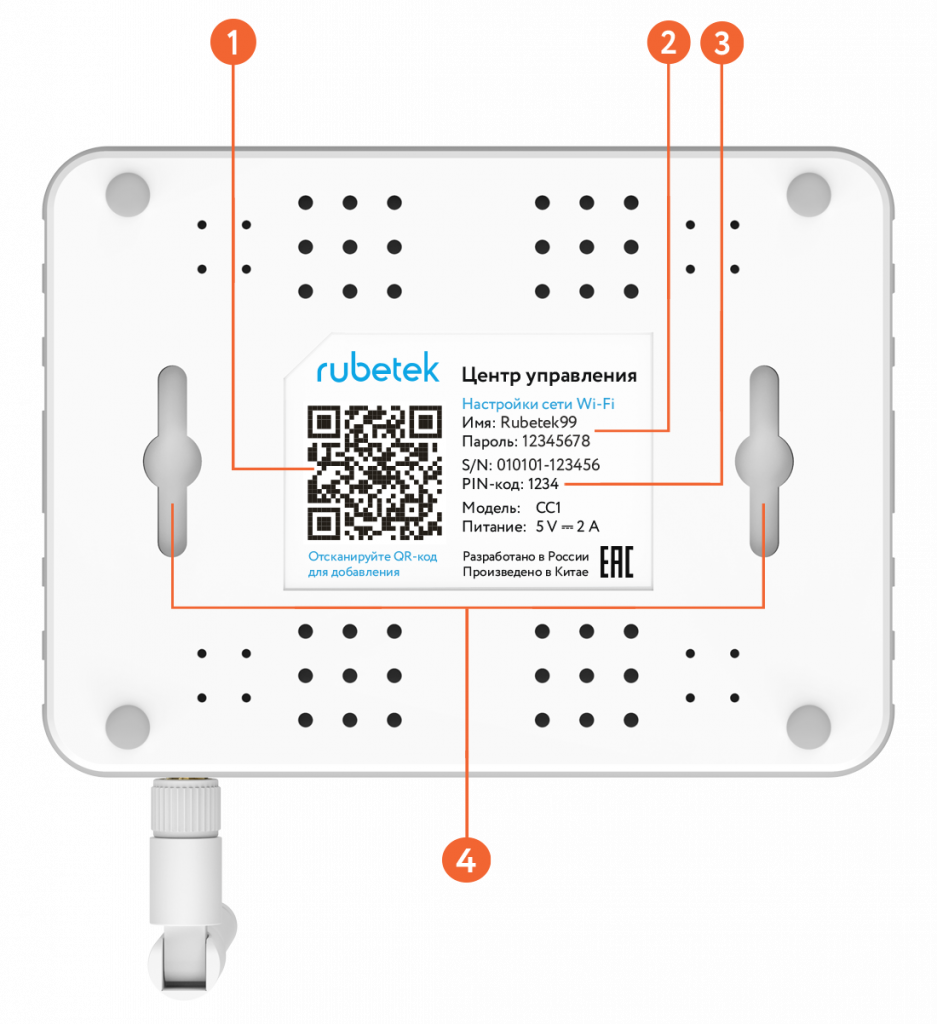 4. Подключите провод питания в соответствующий разъем Центра управления.