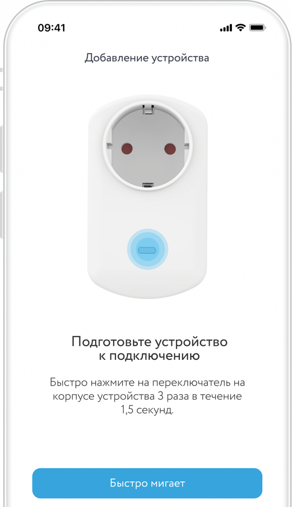 - Если светодиод непрерывно мигает, значит Розетка синхронизируется с Центром Управления.
