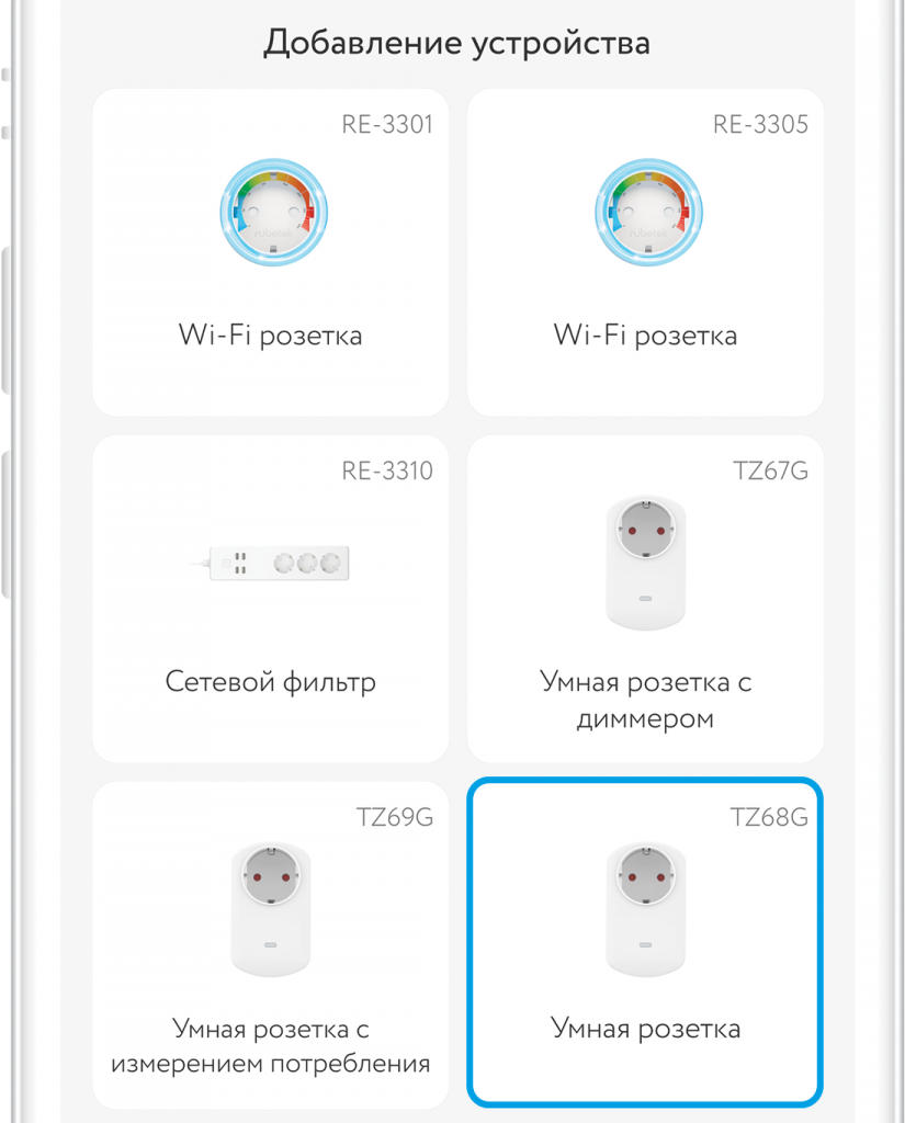 - Выберите раздел Электропитание → Розетки → Умная розетка TZ68G