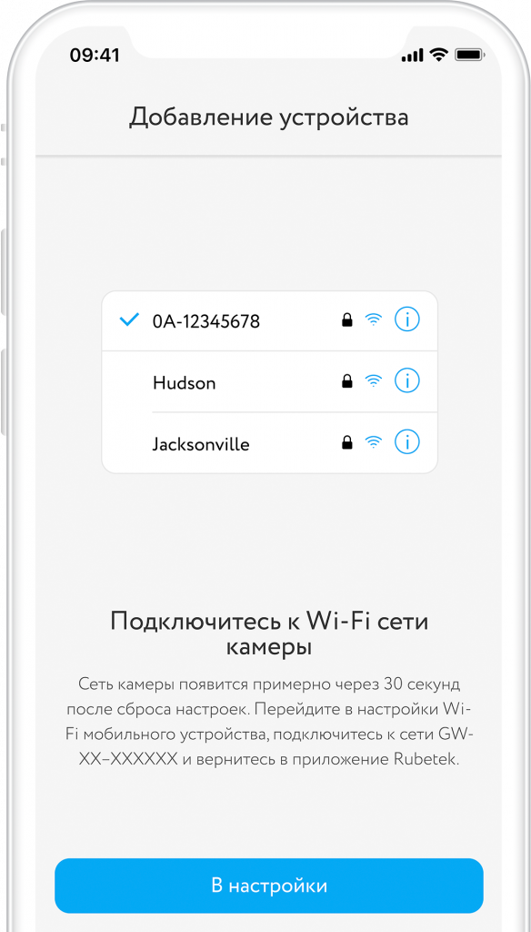 c. дождитесь появления сети Камеры, её название будет выглядеть примерно так: 0A-12345678;