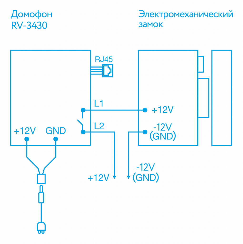 Для управления электромеханическим замком в Домофоне предусмотрены два провода L1 и L2.
