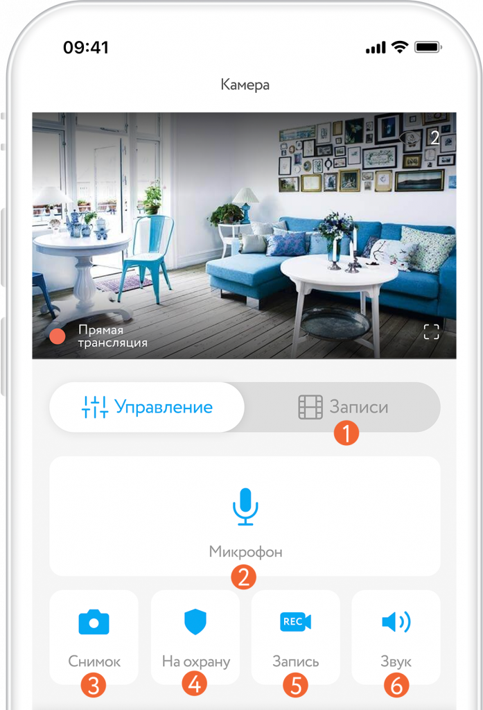 Для получения push-уведомлений при срабатывании встроенного датчика движения или шума необходимо включить режим «Охрана». Для этого нажмите на иконку замка на главном экране Камеры.
