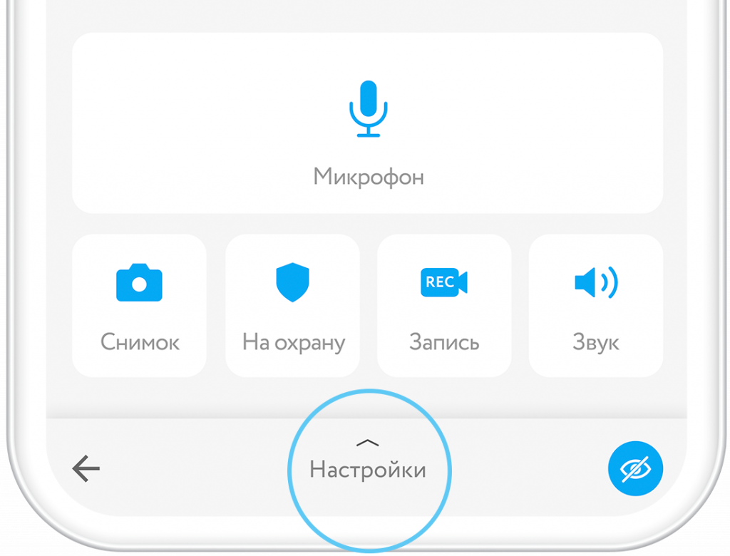 Сигнализация — (вкл./выкл.). Если дом поставлен на охрану, при срабатывании встроенного датчика движения или внешних датчиков безопасности Домофона будет включать сирену (только при наличии Центра управления Rubetek).