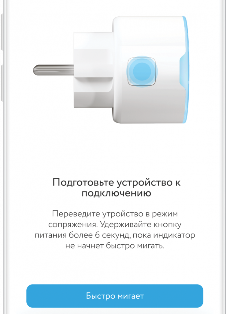 - Чтобы перевести устройство в режим добавления, удерживайте кнопку питания более 6 секунд, пока индикатор не начнет быстро мигать