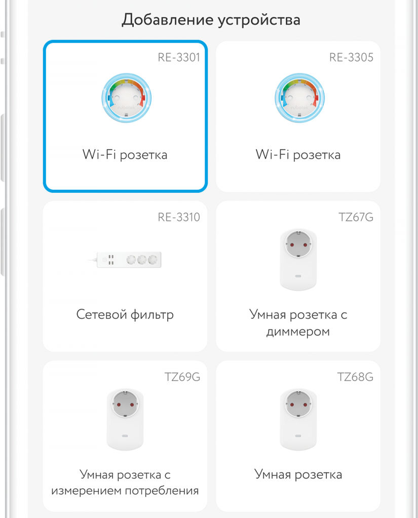 - Выберите раздел Электропитание → Розетки → Wi-Fi розетка RE-3301