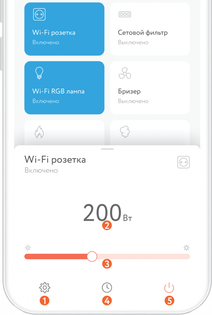 Чтобы открыть шторку управления Розетки, нажмите и удерживайте её плитку на экране списка устройств.