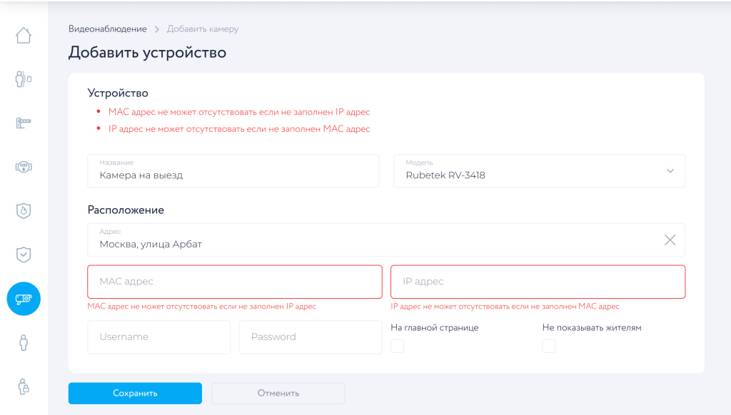 Добавление камер в IoT