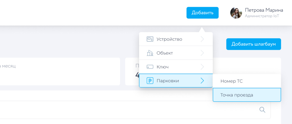 Проверить наличие и работу созданной точки проезда можно в разделе «Управление парковками».