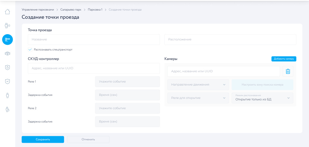 После настройки всех устройств, связанных с точкой проезда, нажать кнопку Сохранить.