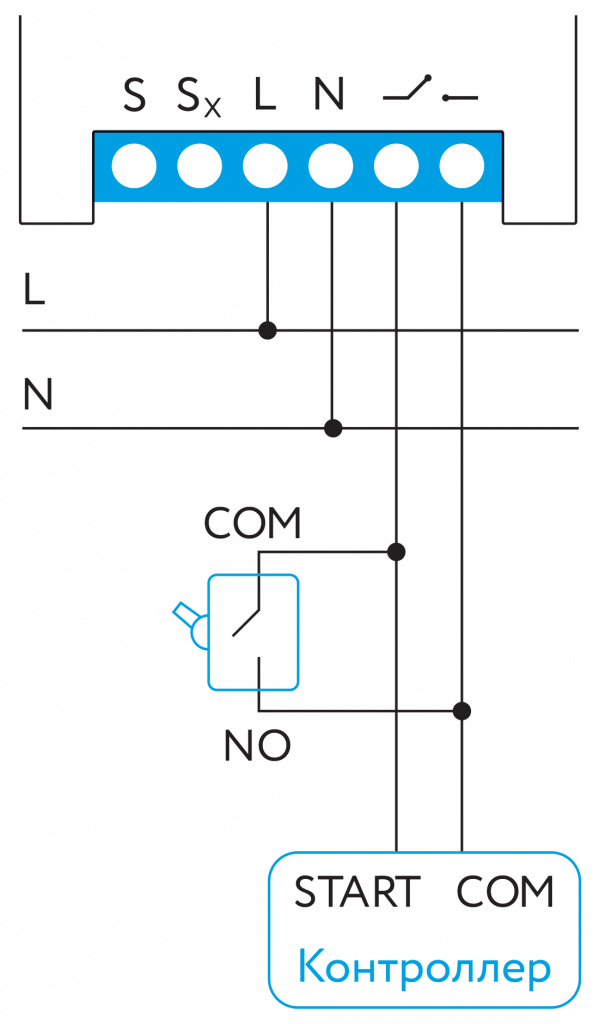 Подключение контроллера ворот/шлагбаума к одноклавишному выключателя