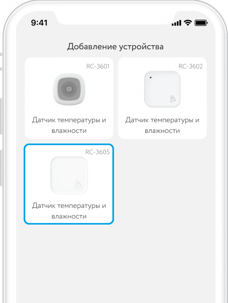 - Выберите раздел Климат → Датчик температуры и влажности → RС-3605